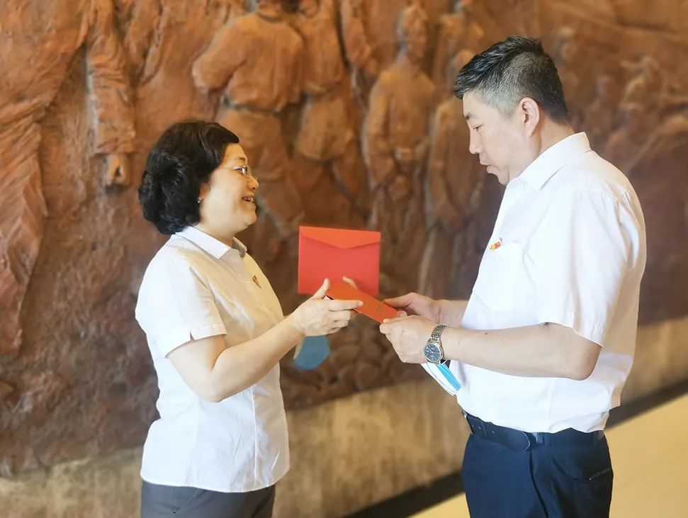 當天下午,第一黨支部黨員們來到揚州革命烈士紀念館參觀學習,緬懷革命先烈,傳承紅色精神。在紀念館內,黨員們重溫了入黨誓詞,瞻仰了革命先烈的英雄事跡,追憶革命先烈浴血奮戰的光輝歷史。活動現場,支部書記為9名退伍軍人黨員過了一個有意義的集體“政治生日”,向他們贈送了“生日禮物”。