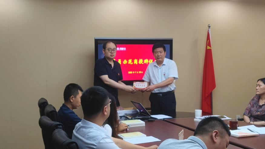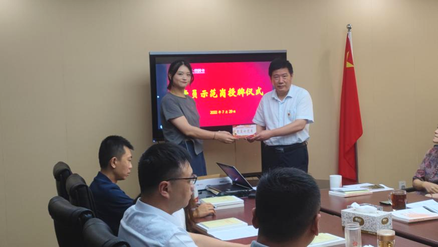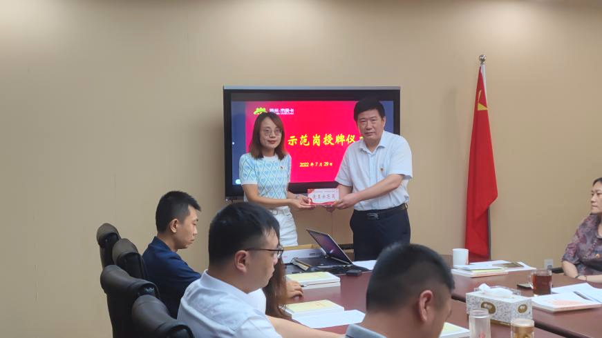 會上,黨支部舉行了黨員示范崗授牌儀式,公司黨支部書記為黨員示范崗授牌,號召黨員學習他們不怕吃苦、甘于奉獻、攻堅克難、勇于擔當的精神,形成學習先進、爭當先進的良好氛圍。