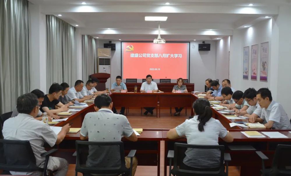 8月18日下午,建盛公司黨支部召開支部(擴大)學習會。公司領導班子成員、中層干部、全體黨員和入黨積極分子參加會議。