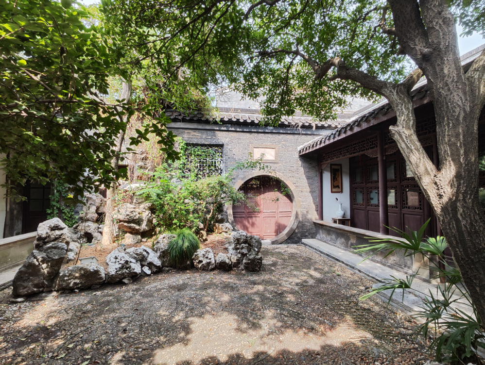 青磚黛瓦烙印著古樸靜謐的歲月色彩,從院內蔓出的綠葉,郁郁蔥蔥,在陽光的照射下透射出生機勃勃,勢與西側燈火霓虹、車水馬龍的文昌百匯街區相互交融,繁華中的古樸,喧鬧中的幽靜,我們在古與今之間來回穿梭。