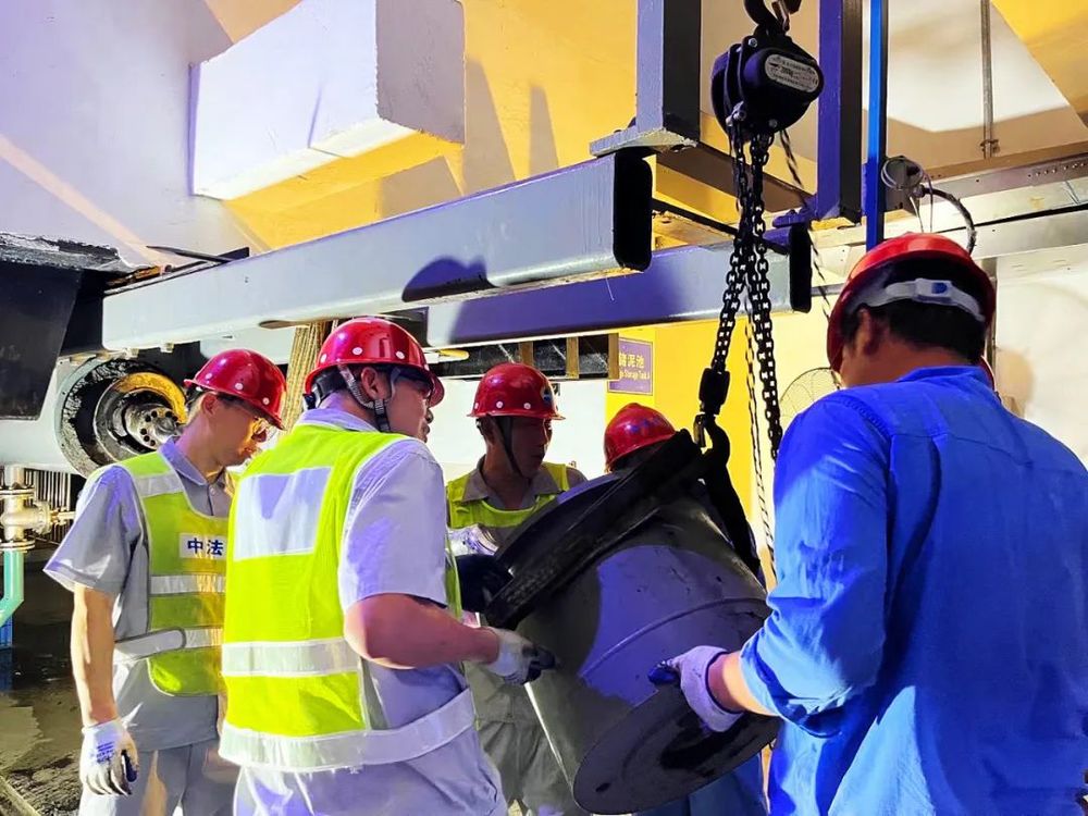 “蒸汽系統關閉,主體設備污泥走空,我們一會到……”8月22日晚19點18分,公司運營維護部接到當班生產人員報修電話,經初步判斷是污泥傳輸系統鬧起了“脾氣”。19點52分,公司運營維護部全體人員到達現場,經現場確認發現是污泥傳輸泵定子發生損壞。找到“癥結”后,他們迅速戴上安全帽,穿上安全背心,這一瞬間,他們化身為夜間的“逆行者”,與時間展開了一場賽跑,應急搶修行動正式拉開帷幕。