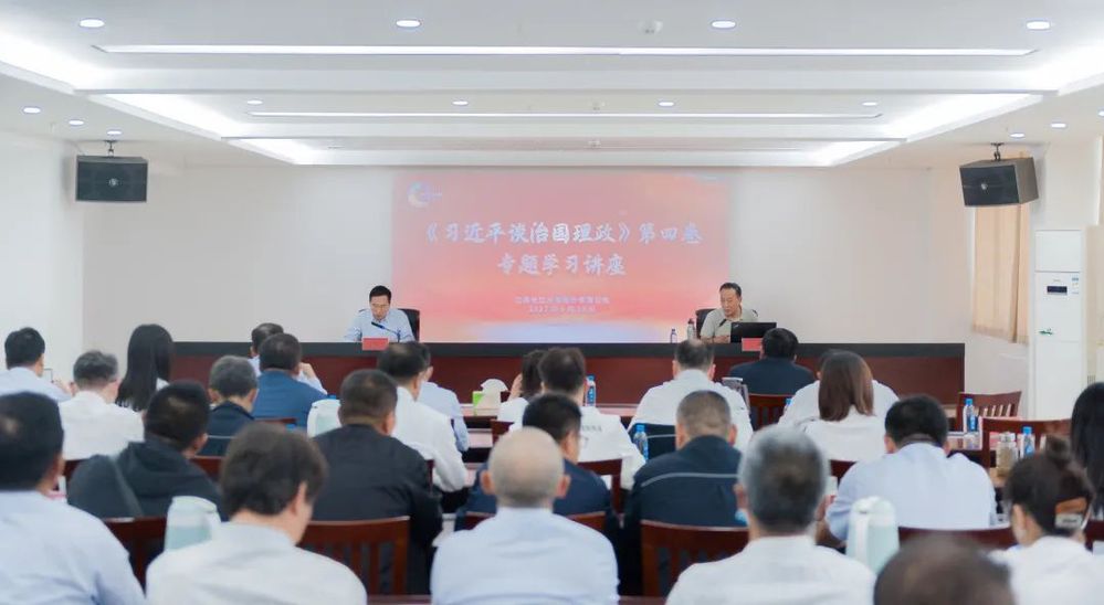 為深入學習貫徹習近平新時代中國特色社會主義思想,9月28日下午,長江水務公司舉辦《習近平談治國理政》第四卷專題學習講座,邀請揚州市委黨校丁健處長講課,公司黨委班子成員、各支部書記、各部門主要負責人、黨員代表聆聽講課。城控集團黨委委員、長江水務公司董事長張正斌主持活動。