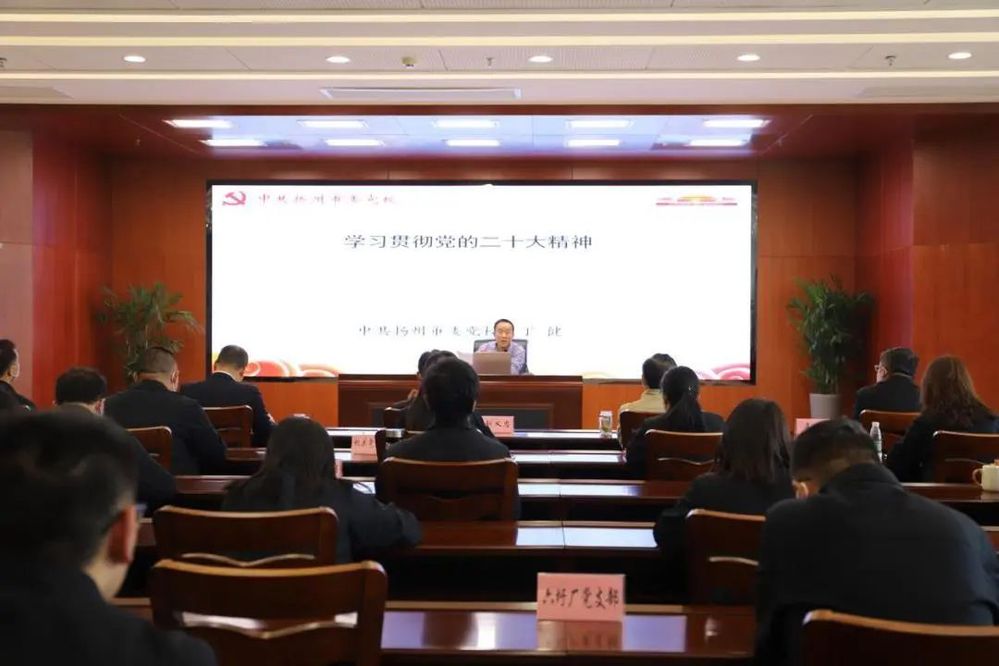 為深入學習和貫徹黨的二十大精神,11月1日下午,潔源排水公司邀請揚州市委黨校培訓處處長丁健,為公司全體黨員開展黨的二十大精神專題黨課。