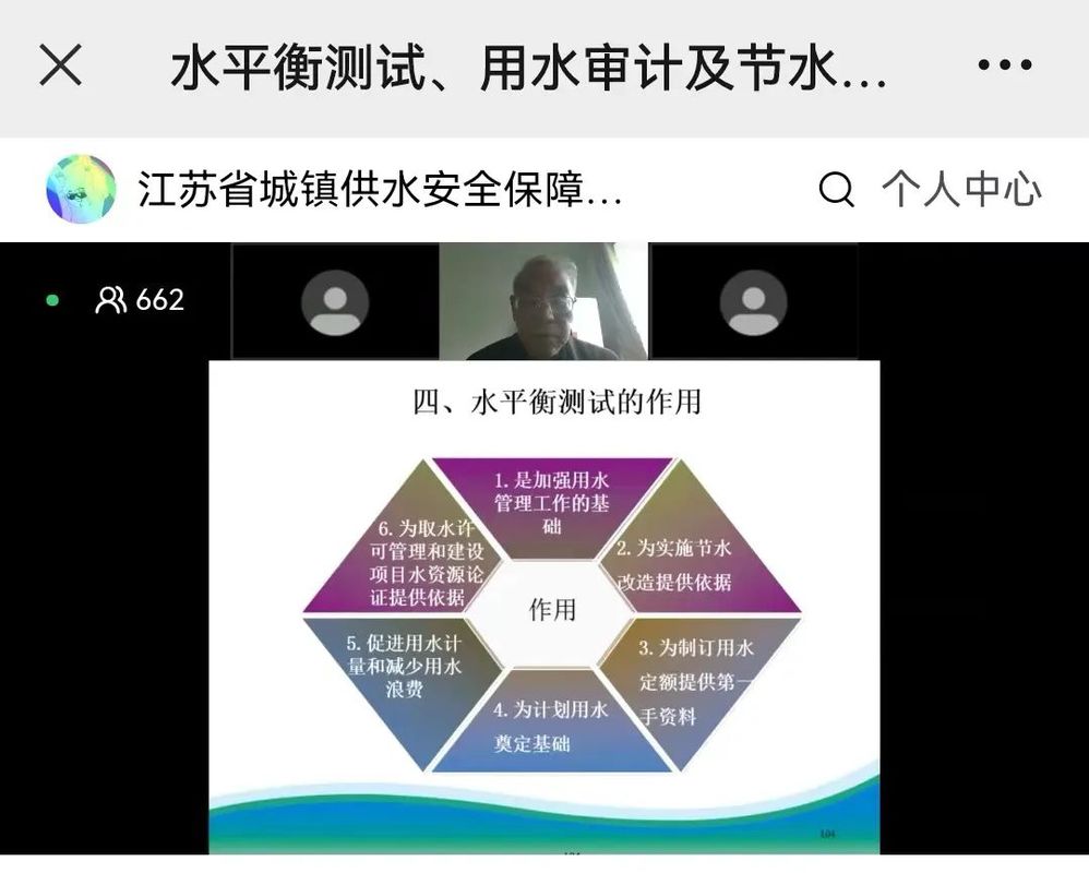 11月2日下午,江蘇省城鎮供水安全保障中心(省水中心)邀請江蘇省工程咨詢中心技術顧問、蘇州節能管理進修學院副院長姚芳龍,作“水平衡測試、用水審計及節水技術”直播報告。長江水務公司有關部門收看直播講座,進行在線學習。