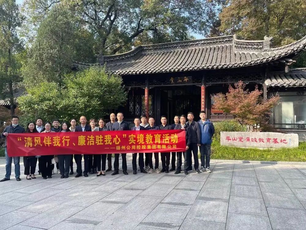 為認真學習貫徹黨的二十大精神,進一步加強黨風廉政建設,結合公司黨建、紀檢工作計劃安排,11月2日,公用控股開展“清風伴我行 廉潔駐我心”實境教育活動,公司領導班子成員、黨員及青年代表前往揚州平山堂廉政教育基地學習。