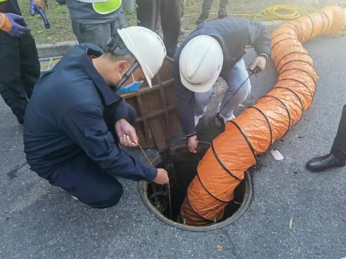 “報告總指揮,實操演練人員已集結完畢,請指示!”現場指揮向總指揮請示后開始演練。在對參演人員進行作業安全風險告知后,演練人員嚴格按照“先通風、再檢測、后作業”的原則,首先對有限空間內采取強制性持續通風措施,再使用便攜式氣體檢測儀對空間內氣體濃度進行檢測。符合安全規范要求后,作業人員依次佩戴安全帶、安全繩、呼吸面罩等防護用品,并經安全員檢查確認,在監護人員輔助下進入有限空間進行作業。整個演練過程井然有序,有條不紊,取得了預期的效果。