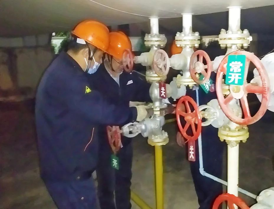 值班領(lǐng)導(dǎo)接報(bào)后,立即啟動(dòng)應(yīng)急預(yù)案,通知搶修人員趕赴現(xiàn)場。搶修人員在半小時(shí)內(nèi)到達(dá)現(xiàn)場,采取注膠堵漏的方式,封堵泄漏點(diǎn)。經(jīng)儀器檢測,確認(rèn)無氣體泄漏后,對(duì)受損儲(chǔ)罐的液化氣實(shí)施倒罐作業(yè),倒罐作業(yè)完成,演練結(jié)束。