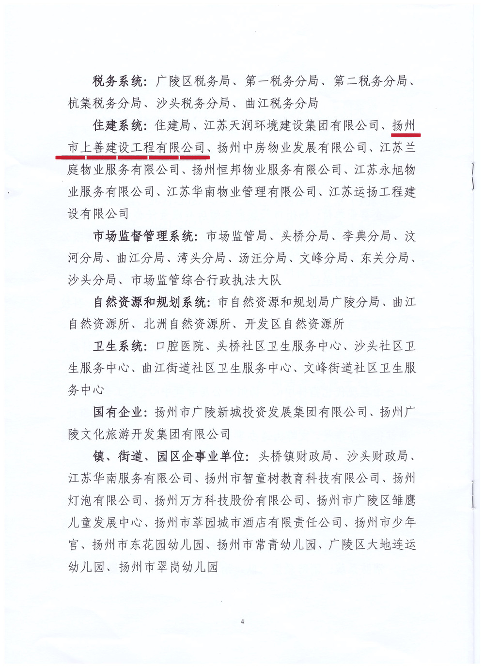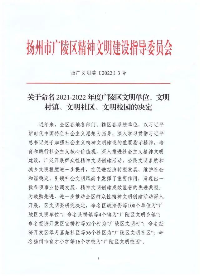 上善公司在集團和廣陵區(qū)文明辦的正確指導下,積極探索文明建設的新思路、新方法,實現物質文明和精神文明的同步提升。近期,廣陵區(qū)文明建設指導委員會發(fā)文表彰了2021-2022年度廣陵區(qū)文明單位,上善公司在此次評選中脫穎而出,被授予該項榮譽稱號。