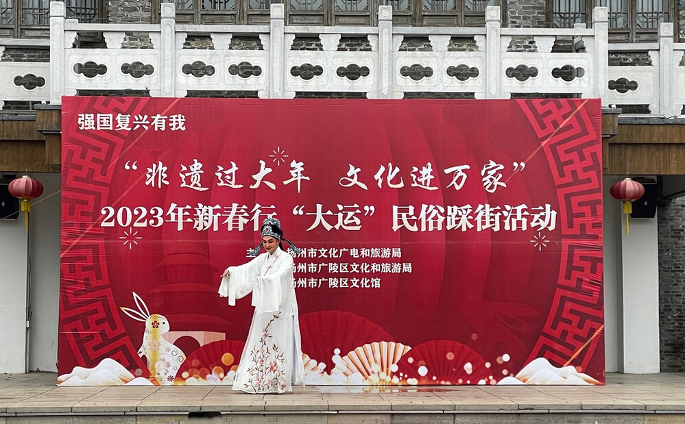 民俗“踩街”迎新春,古韻新風年味濃。在東關街非遺活動現場,動態非遺演出和靜態非遺展示同場亮相,讓市民和游客在現場零距離感受揚劇、曲藝、揚州清曲、木偶戲、揚州剪紙等諸多非物質文化遺產及本地民俗文化,充分展現出充滿濃郁揚州地方特色文化元素和千年古城的歷史文化底蘊。活動現場的市民及游客對這種沉浸式的非遺文化體驗表示大飽眼福,很有特色,讓自己深度感受新春民俗文化氛圍。