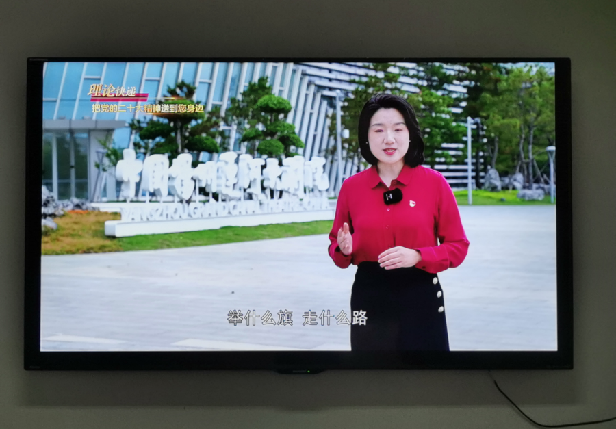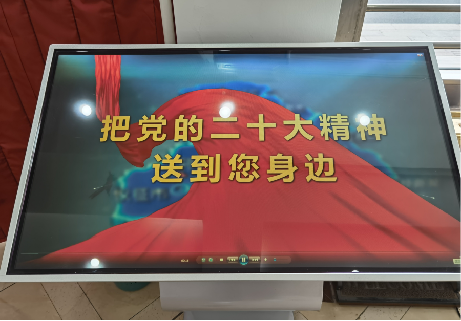 各子公司、生產廠(站)和營業廳利用LED顯示屏、大廳電視屏幕滾動播放市文明辦錄制的《關鍵詞:大會主題》等8個視頻,把黨的二十大精神送到職工身邊。