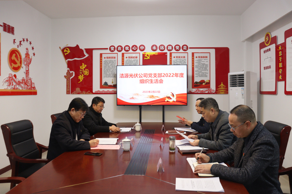 2月22日上午,潔源光伏公司黨支部召開2022年度組織生活會,城控集團黨委委員、總工程師嚴俊泉帶隊到會指導,公司領導班子成員參加會議。