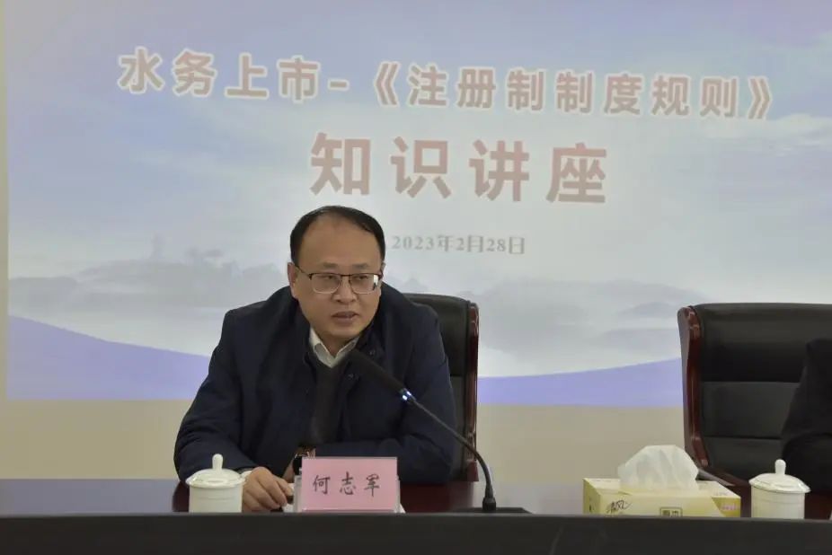2月28日上午,城控集團在長江水務公司舉辦企業上市“全面注冊制制度規則”知識講座。集團黨委委員、總會計師何志軍出席講座活動,集團黨委委員、長江水務董事長張正斌主持講座活動,集團計財部負責人,潔源排水、中法環境主要負責人、分管負責人、財務負責人,長江水務領導班子成員和各部門主要負責人參加講課活動。