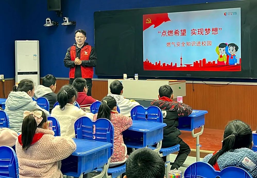 點燃希望,筑夢未來。2023年3月16日上午,揚州城控集團中燃公司“藍焰青年”志愿服務隊聯合新聞女生節目組來到寶應縣西安豐中心小學,開展了以“燃氣安全知多少”為主題的公開活動課。