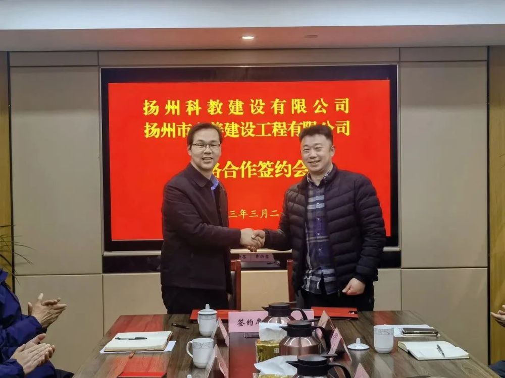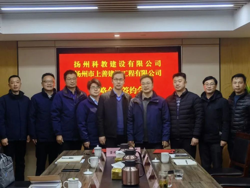 3月24日下午,在揚州科教建設有限公司會議室,上善公司和揚州科教建設簽署了戰略合作協議,雙方公司領導和相關職能部室負責人參加。