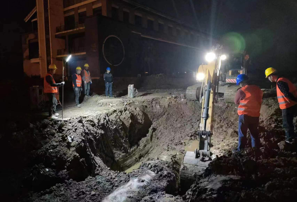 管道遷改工程涉及面廣,碰接點多,地下管線錯綜復雜,影響范圍大,對施工配合要求較高。潤元公司成立了專門的管道遷改工程項目部,協同安保運營處、搶維修中心等部門,逐一進行安全技術交底,做好基坑開挖、臨時用電等各項安全防護措施,確保工程質量和施工安全。每個碰接施工點皆配備了專業技術骨干和安全員,對施工全過程進行流程和安全監督,確保施工過程有條不紊,井然有序。