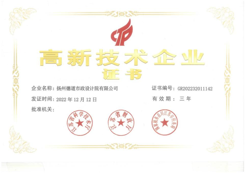 在集團總師辦、財務部等職能部門的精心指導下,在公用控股各部門的通力合作下,公用控股子公司德道市政設計院于近日一舉通過國家高新技術企業認定,喜獲證書。該證書的獲得,充分肯定了德道市政設計院一直以來在科技研發、持續創新等方面的努力成果。