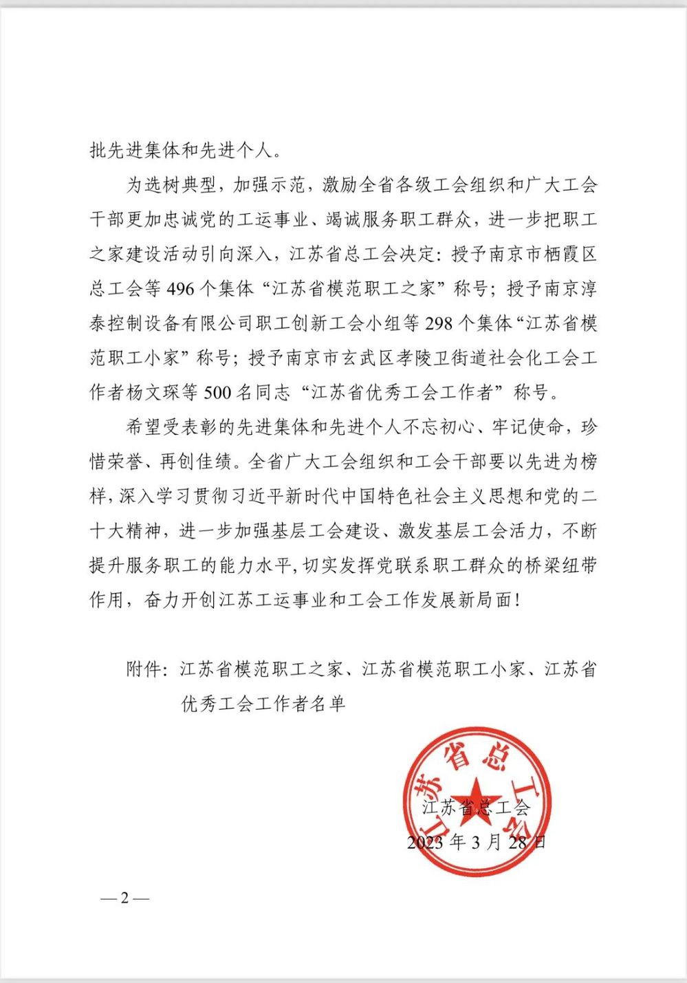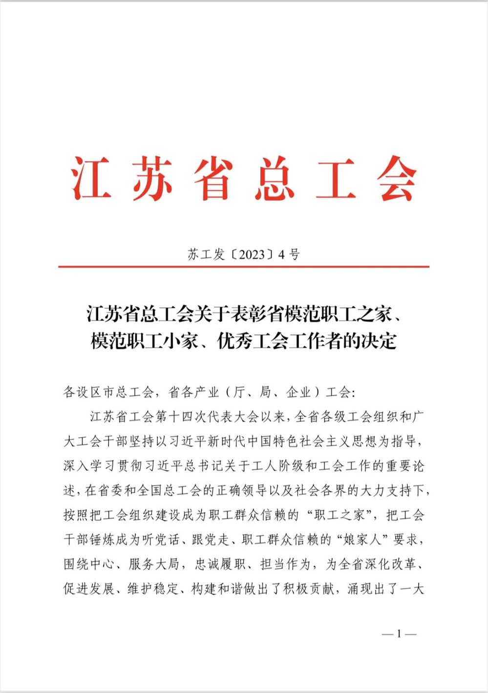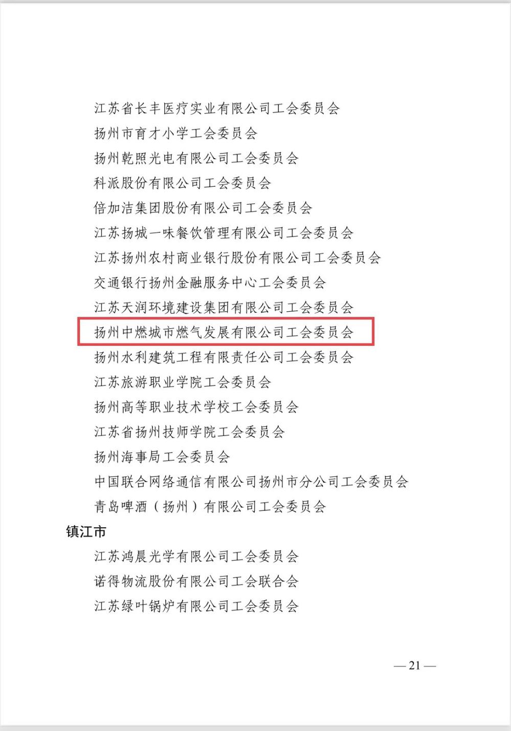 2023年4月19日,江蘇省工會(huì)第十五次代表大會(huì)在南京勝利閉幕。大會(huì)對(duì)省五一勞動(dòng)獎(jiǎng)狀和省工人先鋒號(hào)、省五一勞動(dòng)獎(jiǎng)?wù)隆⑹∧7堵毠ぶ业认冗M(jìn)集體和個(gè)人進(jìn)行表彰,揚(yáng)州中燃公司工會(huì)被授予“省模范職工之家”光榮稱號(hào)。
