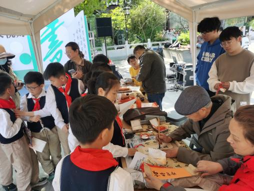 活動現場氣氛熱烈,形式多樣,既有趣味十足的拼貼詩大賽、舊書互換等;也有傳遞愛心的愛心書簽、公益捐贈等;還有打破常規書享界面,由街道圖書館和網紅圖書館聯合呈現的流動書攤快閃,在現場展示展銷各大精品書目,為市民群眾帶來一場閱讀的視覺享受。
