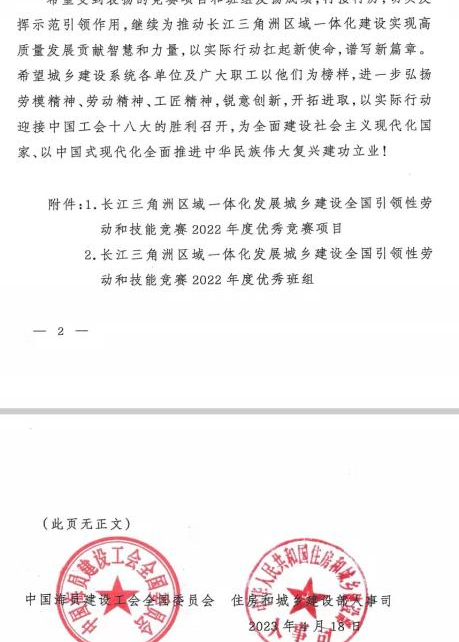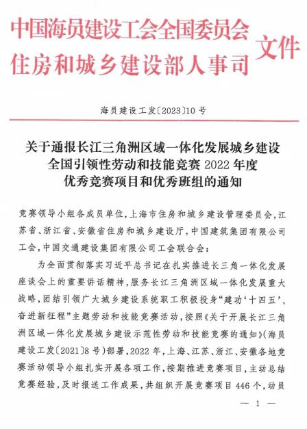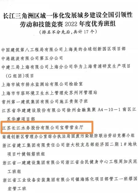 近日,從全國海員建設工會、住房和城鄉建設部傳來喜訊,寶帶營業廳榮獲“長江三角洲區域一體化發展城鄉建設全國引領性勞動和技能競賽2022年度優秀班組”稱號。