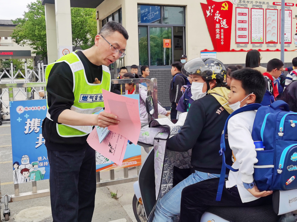 2023年4月28日,揚州中燃公司第五支部“藍焰同心”志愿者在江陽路渡江崗和文峰小學散學點設立交通勸導崗,組織開展“交通安全在心中 幸福快樂伴我行”主題宣傳活動,引導學生從小做起,從自身做起,做到文明禮讓、安全出行、珍愛生命。