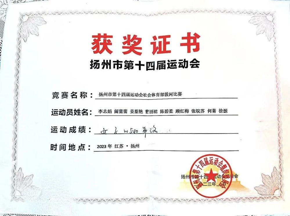 5月28日,揚州市第十四屆運動會社會體育部拔河比賽開幕, 城控集團拔河隊首次出征,勇奪男子組亞軍、混合組亞軍和女子組季軍。
