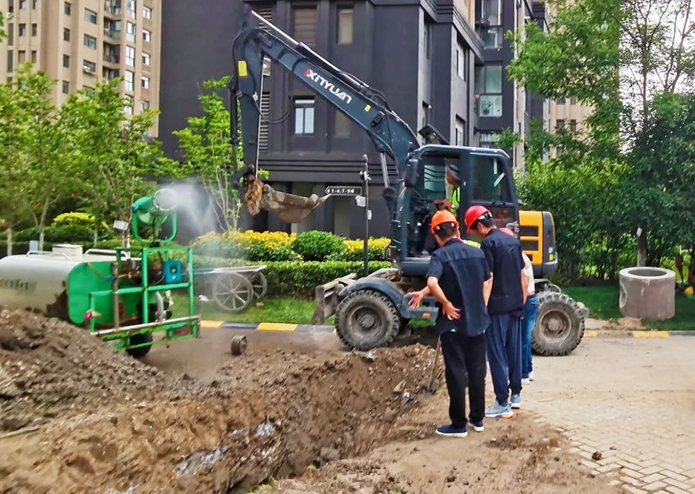 2023年6月3日15時(shí)30分,揚(yáng)州中燃公司24小時(shí)客服熱線接到工地監(jiān)護(hù)人員報(bào)修電話:君悅?cè)A府5幢附近,雨污水施工單位改造施工時(shí)將PE110低壓燃?xì)夤艿劳谄疲斐纱罅刻烊粴庑孤埩⒓赐ㄖS修人員趕赴現(xiàn)場搶修。接報(bào)后,公司立即按照應(yīng)急處置流程,安排生產(chǎn)運(yùn)營部值班搶修人員趕赴現(xiàn)場。