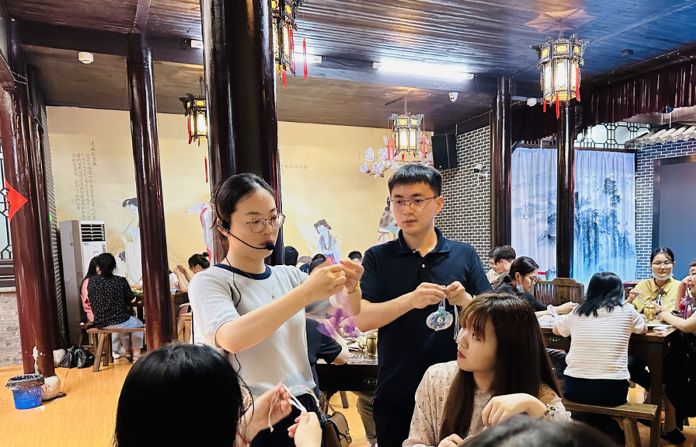 公用控股公司黨委副書記、紀委書記首先為大家送上溫馨的節日祝福,隨后由活動現場的指導老師通過“演、講、示、教”,讓大家切身體會傳統中草藥香囊的制作技藝,并現場制作中草藥香囊,活動現場氛圍融洽,大家紛紛用親手制作的香囊傳遞美好的祝愿;最后大家共同欣賞了馥園“千秋粉黛”曲藝演出,通過揚州清曲、評話、木偶劇等非遺表演項目,使大家感受揚州傳統曲藝文化的魅力。
