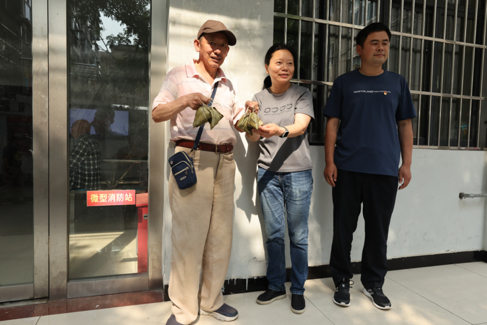 第三黨支部志愿者和社區工作人員分為兩組,將蒸煮好的近200個粽子分送到沙口社區困難家庭、獨居老人、重度殘疾人及孤寡老人家中,為他們送上慰問品及誠摯的節日祝福。