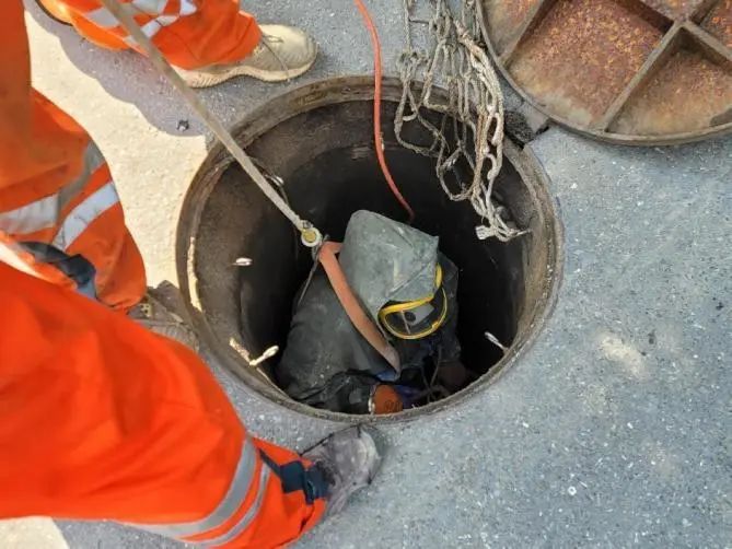 項目負責人按照有限空間作業操作規范,辦理作業證,對施工現場人員進行安全技術交底,作業人員對井內氣體進行檢測。