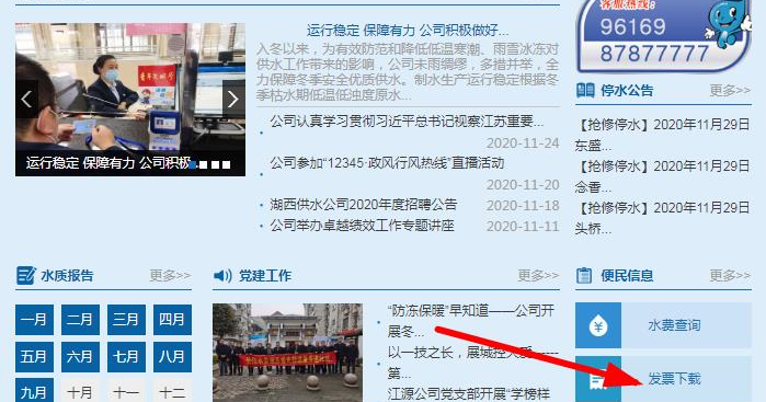 第一步:在瀏覽器的搜索欄中輸入:江蘇長江水務股份有限公司,點擊進入官網首頁。選擇發票下載,進入電子發票服務平臺。