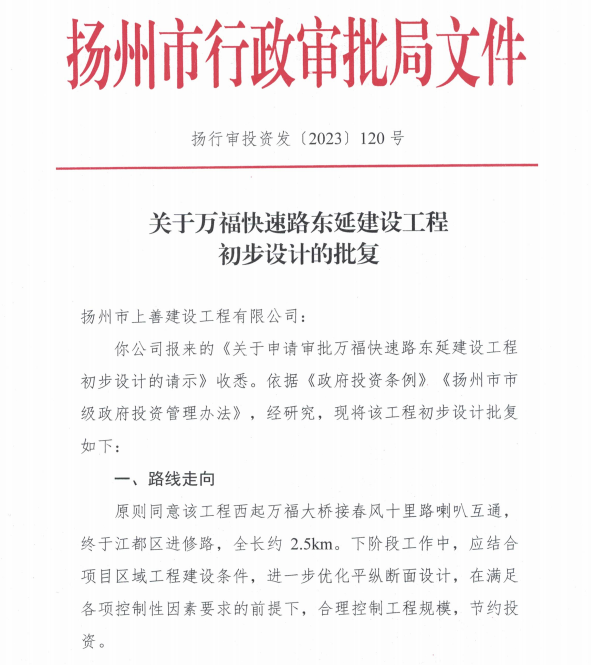 7月18日,萬(wàn)福快速路東延建設(shè)工程初步設(shè)計(jì)獲得市行政審批局批復(fù),標(biāo)志該項(xiàng)目正式進(jìn)入開工建設(shè)啟動(dòng)階段。