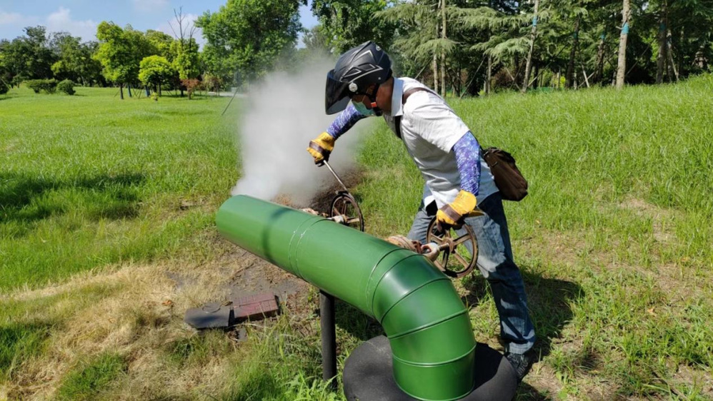 非供熱季由于用戶用氣量減少,管網負荷降低,蒸汽管道內容易出現水沖擊情況,為避免水沖擊更要加強巡檢。“早發現,早治療”,一旦發現振動,就要立即加大疏水保證供熱管網安全。炎炎日正午,灼灼火俱燃,伴隨著夏日聒噪的蟬鳴與滾滾的熱浪,巡檢員身穿工作服,頭戴安全帽,在這150公里的炎炎管線周邊奔波,為高溫下的設備“做體檢”,用雙腳丈量這片熱土,只為保障熱網“健康”度夏。他們手中的工具猶如醫生的手術刀,始終守護著全城熱網的“安全線”。熱浪炙烤皮膚、汗水濕透衣背是他們的工作常態,用他們的話來說:早已習慣。