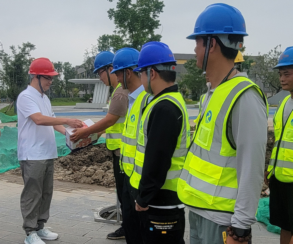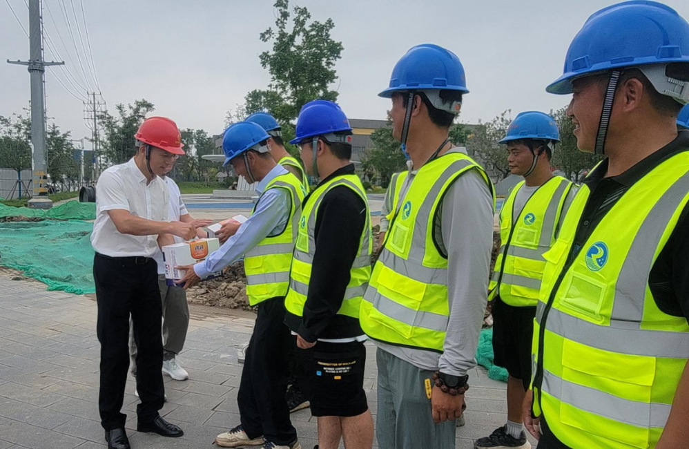 慰問組一行深入施工一線,在現(xiàn)場詳細(xì)了解了項(xiàng)目工程進(jìn)展、安全文明施工、防暑降溫措施等情況,仔細(xì)詢問了項(xiàng)目推進(jìn)中的堵點(diǎn)卡點(diǎn),現(xiàn)場辦公,推進(jìn)解決,并為一線建設(shè)者送上了防暑降溫慰問品。