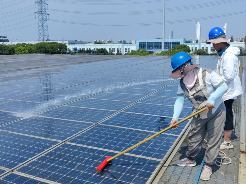 針對排查出的設(shè)備故障,嚴(yán)格按照“搶時間保發(fā)電效率,抓設(shè)備促安全生產(chǎn)”的工作原則,第一時間組織進行故障分析、處理,對各類應(yīng)急搶修任務(wù)做到迅速反應(yīng)、高效處置,確保及時恢復(fù)設(shè)備運行,最大限度減少發(fā)電量損失。同時,結(jié)合電量數(shù)據(jù)對比分析,優(yōu)化光伏組件清洗方案,組織開展清洗作業(yè),嚴(yán)格落實清洗驗收標(biāo)準(zhǔn),切實提高系統(tǒng)發(fā)電效率,努力推進各光伏電站穩(wěn)發(fā)、多發(fā)、滿發(fā)。7月11日-8月10日,14座光伏電站總發(fā)電量235萬度,為完成全年發(fā)電量目標(biāo)任務(wù)打下了堅實基礎(chǔ)。
