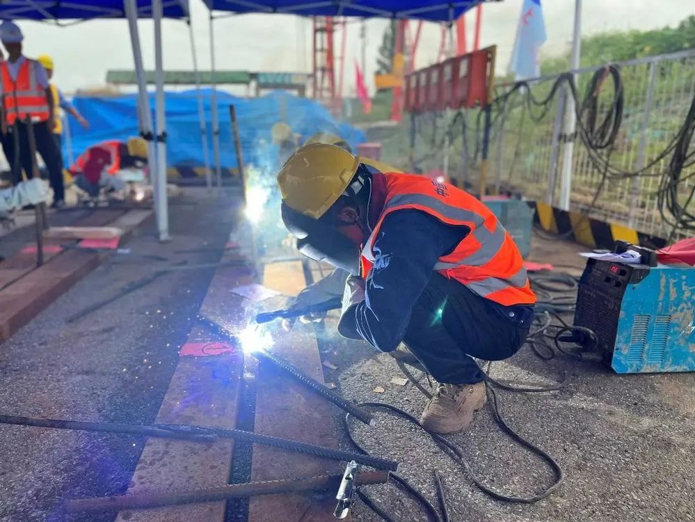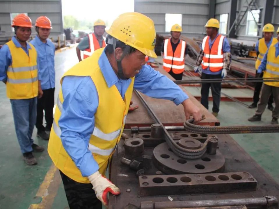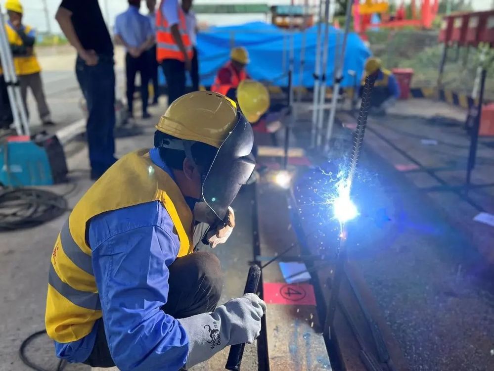 鋼筋工、焊工技能競賽活動中,選手們各個精神飽滿,紛紛拿出看家本領,全身心投入其中。焊工技能比賽現場焊花飛濺、弧光四溢,電光火石之間呈現出緊張激烈而又規范有序的氛圍;另一邊的鋼筋工技能競賽選手們也不甘示弱,搶速度、追精度、比力度,細細鐵絲牢牢綁扎住的不只有鋼筋,更有他們彼此之間的默契。經過2個小時的激烈比賽后,評委組對參賽選手的作品進行了公平公正的評選,并為獲獎選手頒發了獎狀。