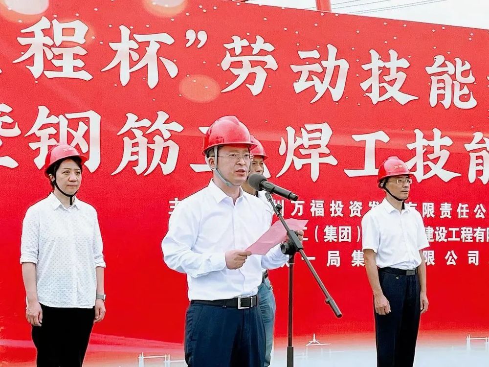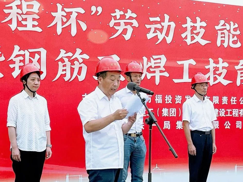 為充分調動市級重點工程壁虎河大橋及運河路北延項目參建單位及廣大員工工作積極性,不斷激發建設者勞動熱情,保證項目在安全的前提下快速推進,2023年9月15日,由萬福公司主辦的“新里程杯”勞動技能競賽啟動儀式暨鋼筋工、焊工技能競賽活動在運河路北延工程施工現場舉行。揚州市總工會副主席伍瑞慶,揚州市住建局黨委委員、副局長肖波,揚州市城控集團黨委副書記徐飛,黨委委員、副總經理季紅軍,揚州市總工會建設產業工會主任范華,城控集團直屬聯合基層工會主席徐紫月,萬福公司領導班子成員,各參建單位相關負責人、工會主席、項目管理人員代表及工人代表參加了活動。