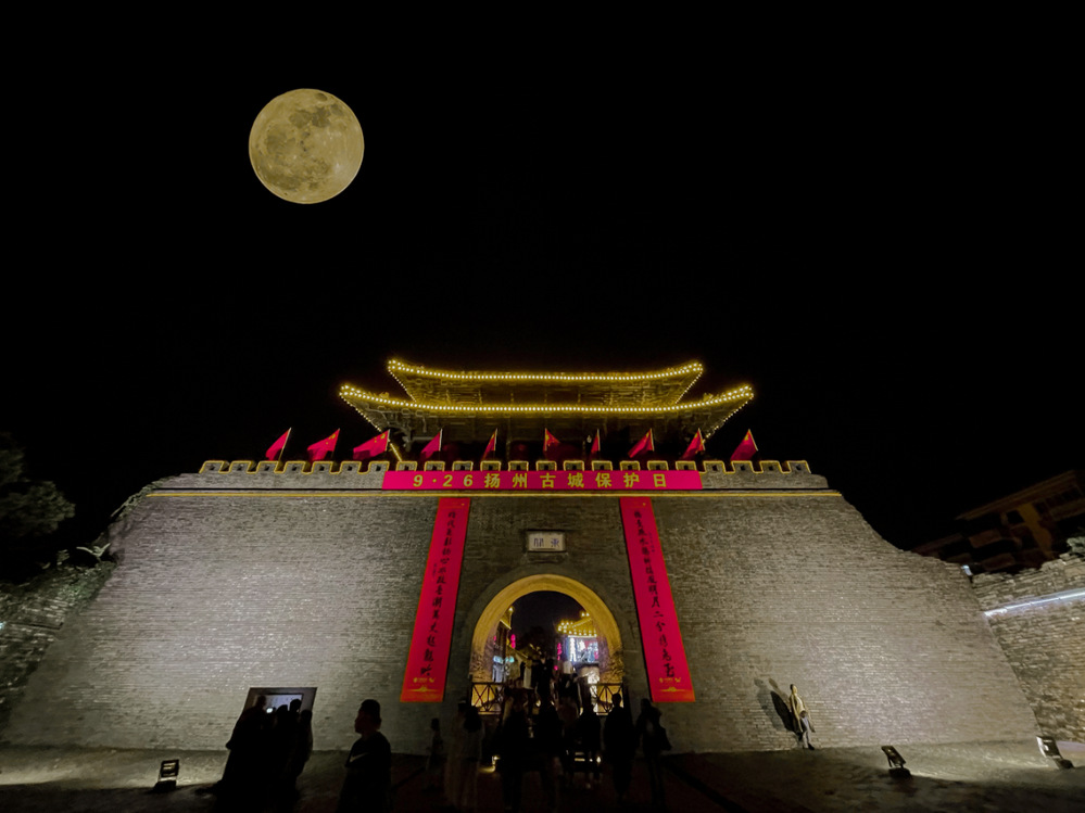 中秋當(dāng)日,東關(guān)街沉浸式還原了兩宋中秋習(xí)俗,諸如中秋拜月人團(tuán)圓-拜月儀式活動、碧云高樓廣陵市-南宋走街還原秀、坐花載月太守令-飛花令對詩活動以及坊間斗智爭上籌-傳統(tǒng)游戲競賽活動。