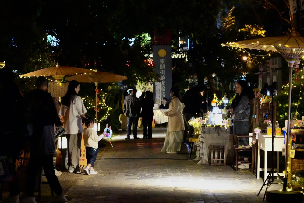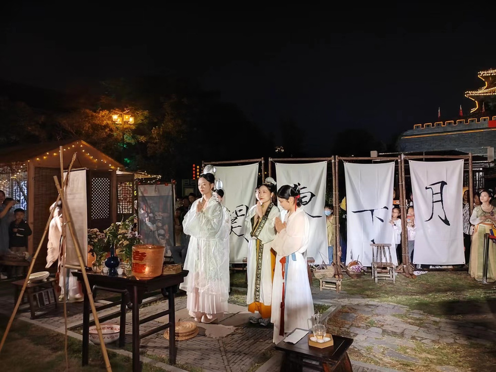 “今人不見古時(shí)月,今月曾經(jīng)照古人”,雖然距離宋代已愈千年,但人們賞月的志趣,對月圓人團(tuán)圓的追求依然不變。此次“二分明月映東關(guān)”中秋風(fēng)物游活動通過沉浸式體驗(yàn)的方式,將廣大游客帶到了千年前“燈宵月夕,雪際花時(shí),簫鼓喧空,幾家夜宴”的中秋之夜。于是,此刻我們眼前的風(fēng)物集會,便有了因時(shí)間沉淀出的悠遠(yuǎn)詩意,有了實(shí)實(shí)在在的文化傳承滋味。