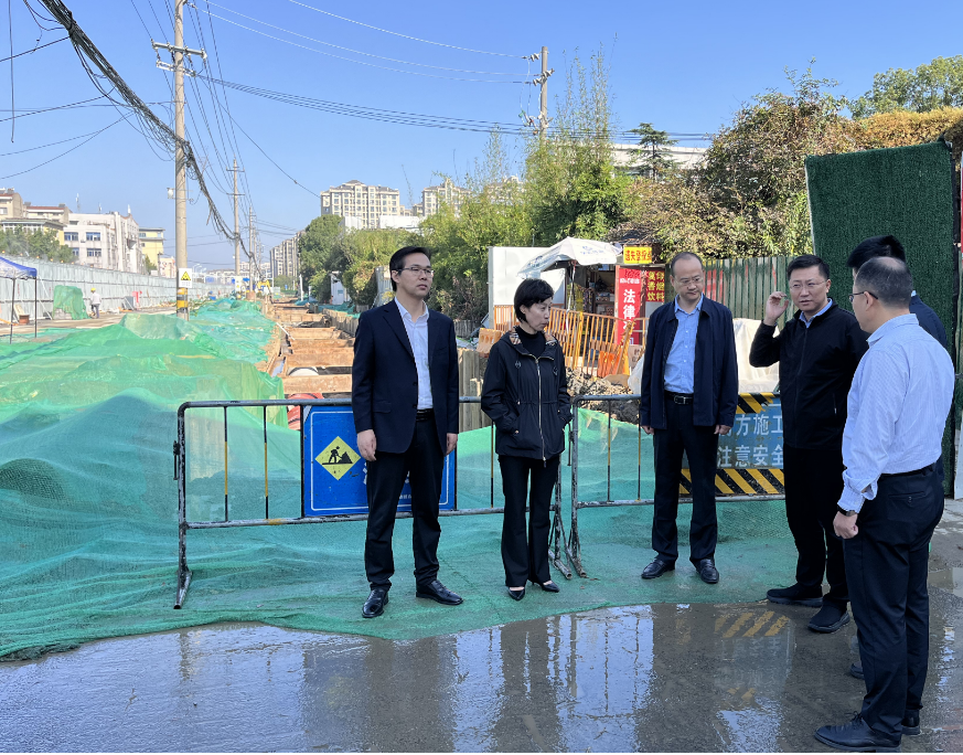 10月20日上午,廣陵區區長郎俊帶隊來到上善公司江都路(萬福路—文昌路)雨污水管道及景觀提升工程三標段施工現場,主要督查在建工地揚塵管控情況。區政府辦、生態環境局、住建局、城管局、交通局、商務局主要負責人及上善公司總經理付元寧陪同參加督察。