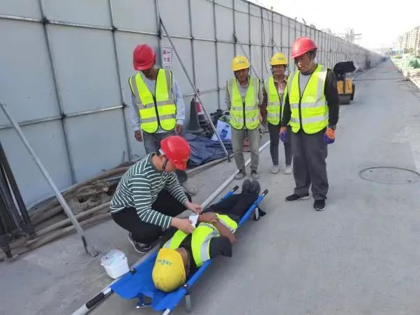 本次演練以正在施工的排水管道工程基坑坍塌為背景,演練開始后,現場應急指揮部立即啟動應急預案,迅速組織施工單位人員施救,同時向公司及有關部門報告事故發生時間、地點和傷亡情況。救護人員趕到現場后,作業人員積極配合搶救傷員。演練過程中,各環節緊扣,現場人員快速響應、執行有力、通力協作、組織有序,達到了良好的演練效果。