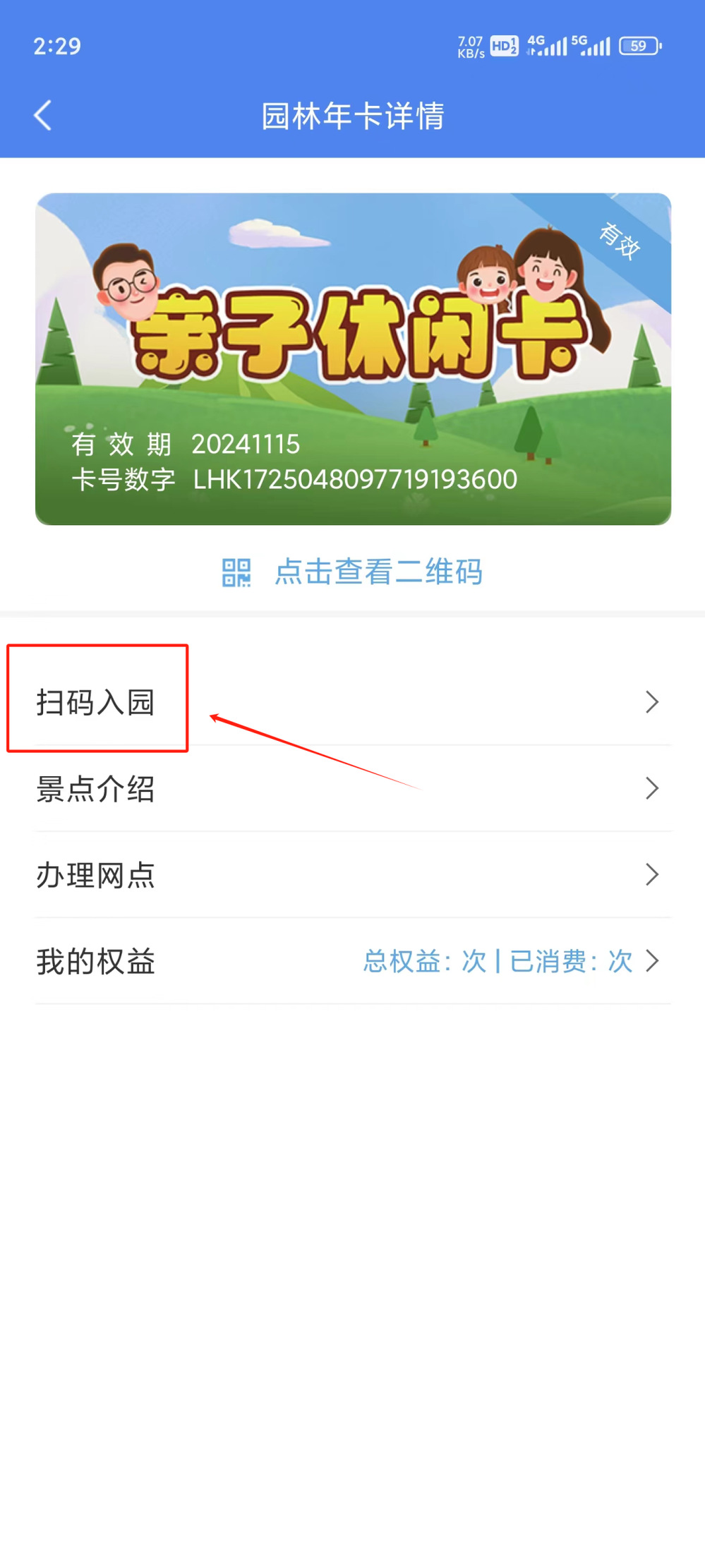 選擇所需核銷的卡種,點擊“掃碼入園”。