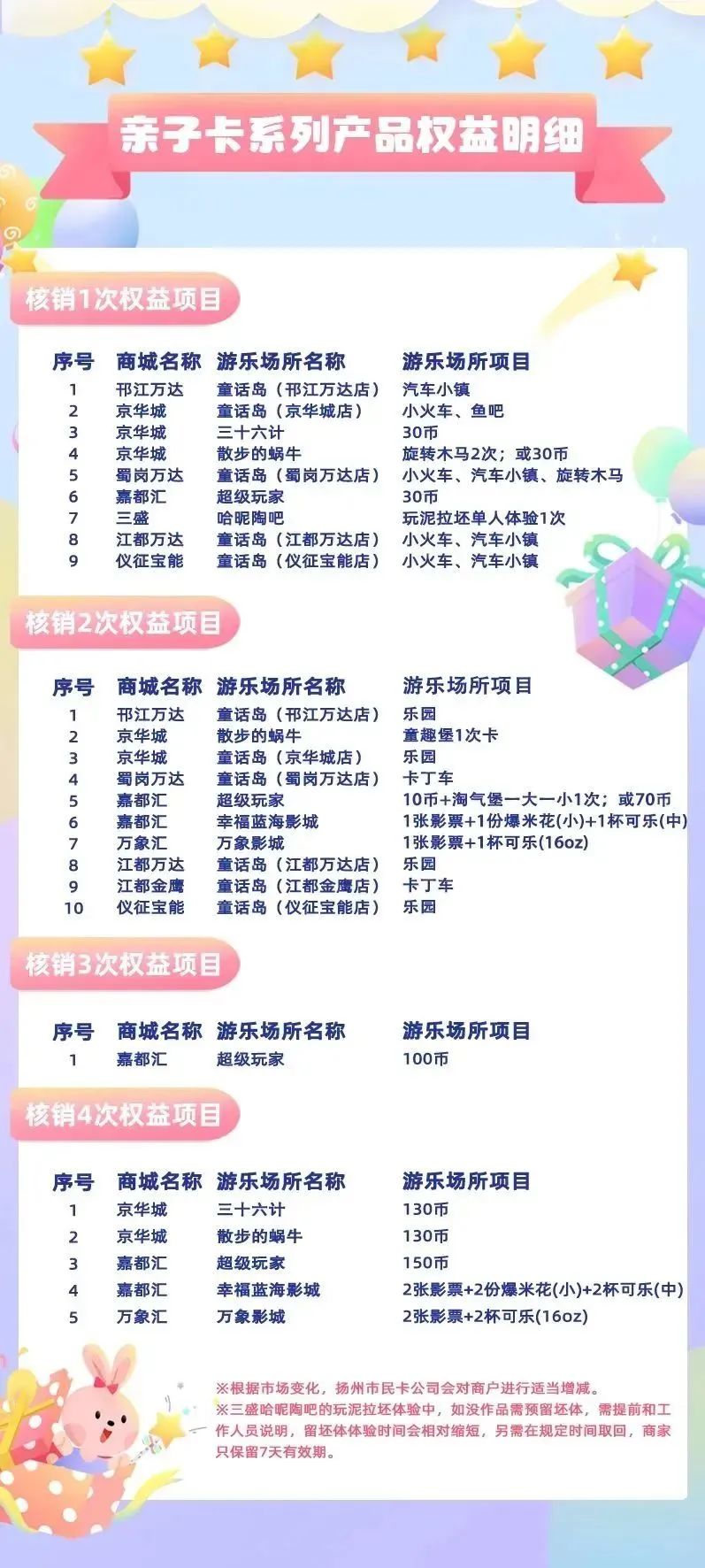 親子卡系列產品是由揚州市民卡有限責任公司整合發行的親子項目游樂設施權益卡,主要分為親子歡樂卡和親子休閑卡。