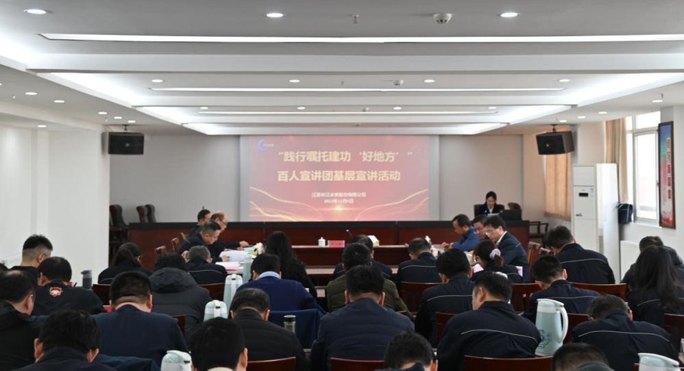 為深入學(xué)習(xí)貫徹習(xí)近平新時(shí)代中國(guó)特色社會(huì)主義思想,切實(shí)推動(dòng)主題教育深入基層、走深走實(shí),12月6日,長(zhǎng)江水務(wù)開(kāi)展“踐行囑托建功‘好地方’”百人宣講團(tuán)基層宣講活動(dòng),公司領(lǐng)導(dǎo)班子、全體中層干部和部分職工代表參加了活動(dòng)。