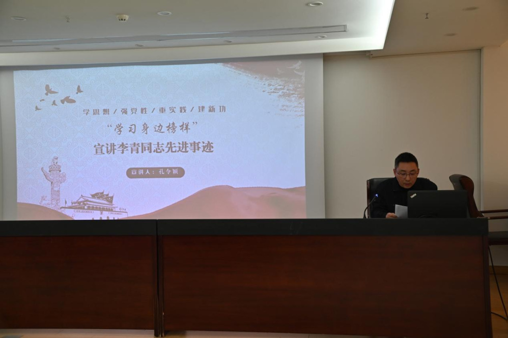 隨后,由長(zhǎng)江水務(wù)第五黨支部副書(shū)記孔令穎同志宣講“學(xué)習(xí)身邊榜樣”——李青同志先進(jìn)事跡,用樸實(shí)的語(yǔ)言、生動(dòng)的例子、真實(shí)的情感講述了李青30年如一日為民服務(wù)的初心故事。