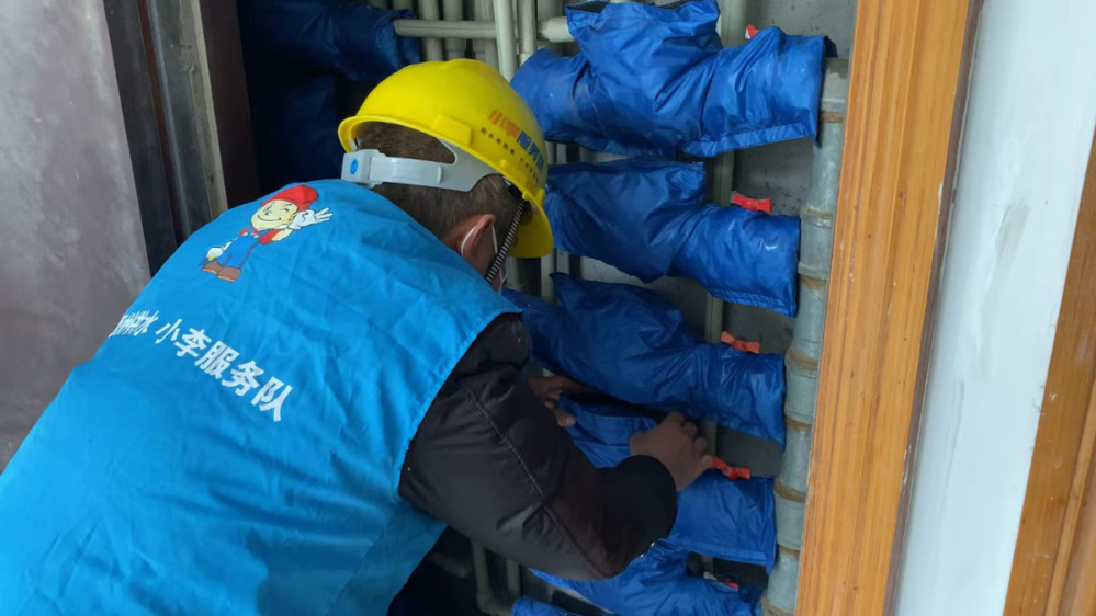 戶外管道是供水系統中的重要組成部分,為了防止管道在低溫情況下凍裂漏水,長江水務根據小區布局、樓棟朝向和管道走向,對架空層、室外、樓道間管道的小區供水管道進行檢查和登記,對戶外管道包裹保溫層。由片區抄表員查看小高層住宅管道井、公共走廊門窗是否完好,根據情況聯系小區物業進行整改,同時告知防寒防凍事項。