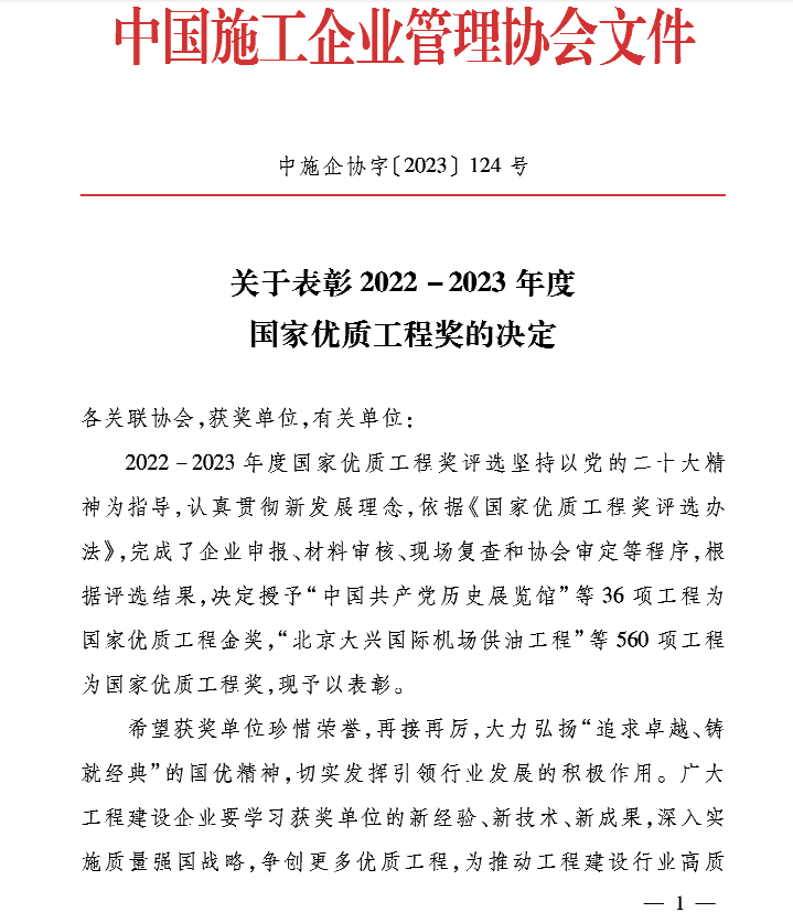 國家優質工程獎設立于1981年,倡導“追求卓越、鑄就經典”的精神理念,評定注重工程質量的全面、系統管理,是經國務院確認的我國工程建設領域設立最早,規格最高,跨行業、跨專業的國家級質量獎。
