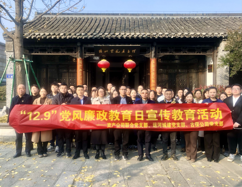12月6日,資產(chǎn)公司聯(lián)合黨支部、運(yùn)河城建公司黨支部和古保公司黨支部聯(lián)合組織公司黨員、入黨積極分子前往揚(yáng)州阮家祠堂開展“12·9”黨風(fēng)廉政教育日活動。