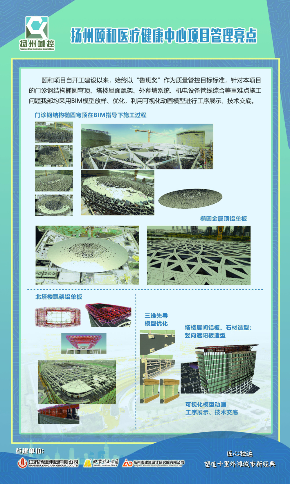 揚州頤和醫療健康中心(揚州市婦女兒童醫院)項目位于江廣融合區廣陵新城區域內,項目一期總投資19億 ,工程占地99.7畝,總建筑面積約20萬平方米,其中地上面積約12.26萬平方米,地下面積約7.74 萬平方米。該項目將建成一所開放床位1000張的,集醫療、教學、科研、預防、康復為一體的三級專科婦女兒童醫院。項目于2020年3月正式開工,2021年12月主體工程驗收合格。在疫情的考驗下,頤和項目部各參建單位建設者加班加點、日夜奮戰,最終在2023年1月完成項目整體竣工驗收,12月16日正式投入使用。