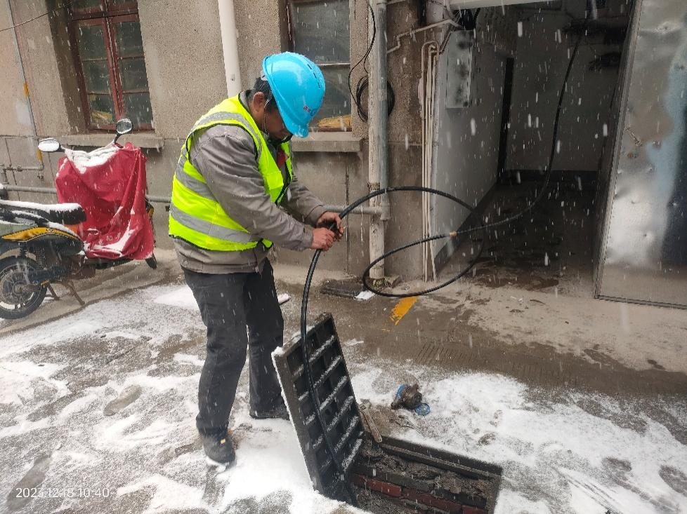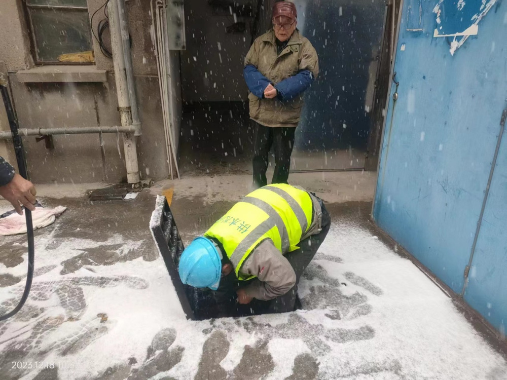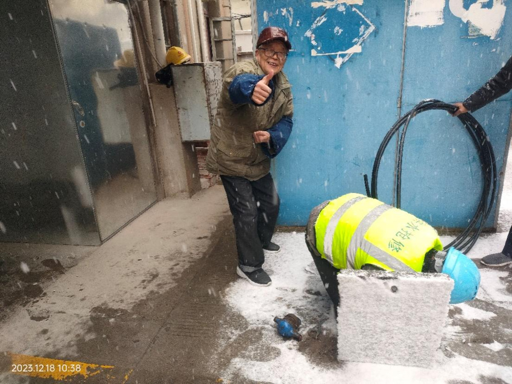 掀開被積雪覆蓋著的井蓋,手拿扳手伸進浸著冰水的井室,檢查用水設施……在張大爺家樓下,搶修人員安裝了20米長的臨時供水管道,一直通到報修的沙中一村15棟207張大爺家里。