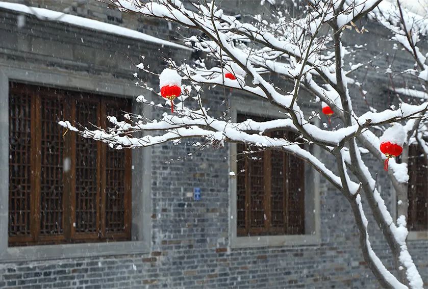 大雪賦予東關街吉祥,屋檐下的紅燈籠顯得格外耀眼。